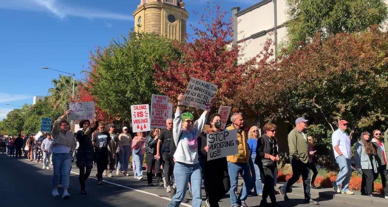 Around 2000 took part in the march in Geelong on Sunday morning, as protests were held nation wide against gendered violence.